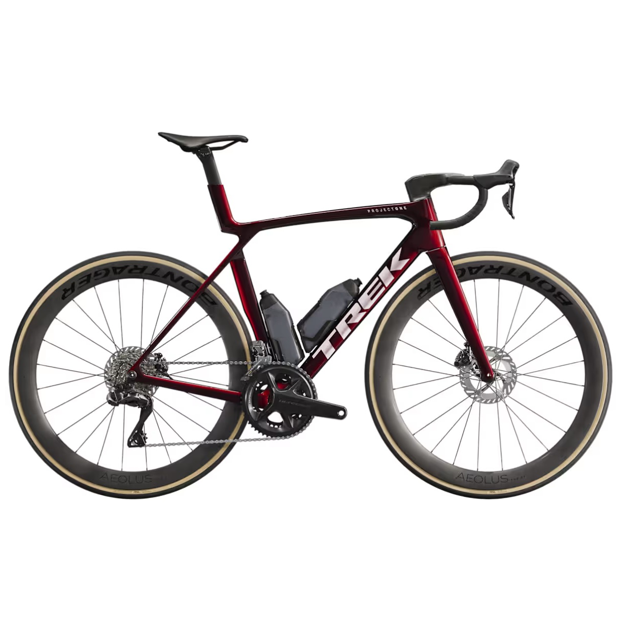 Madone Gen 8 one-piece carbon, tapered carbon steerer, internal brake routing, flat mount disc, 12×100 mm chamfered thru axle