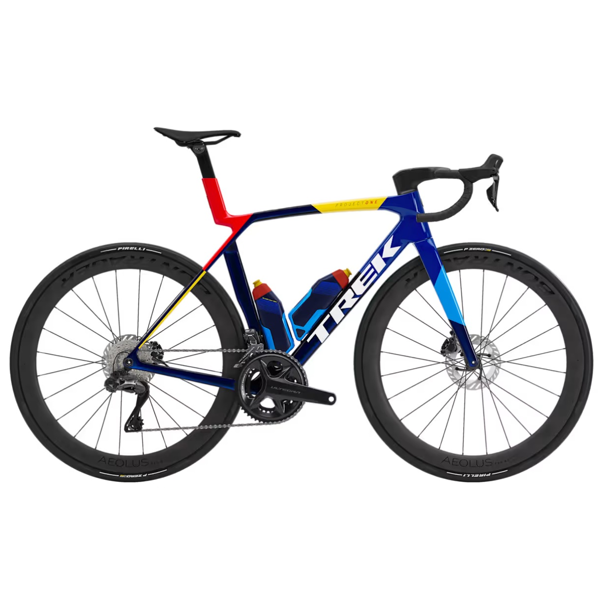 Povsem novi Madone Gen 8 je osupljiv skupek Trekovih najlažjih in najhitrejših cestnih koles. Madone SLR 7 AXS Gen 8 je izjemno lahko aero cestno kolo, ustvarjeno za dirkanje. Okvir iz 900 Series OCLV karbona zagotavlja izredno nizko težo in aerodinamične prednosti, IsoFlow tehnologija pa poskrbi, da vam za hitrost ni treba žrtvovati udobja. Kolo je pripravljeno na dirko – opremljeno je z brezžičnim 2×12 Shimano Ultegra Di2 prestavnim sistemom, karbonskimi obročniki Bontrager Aeolus Pro 51, enodelnim krmilom/nosilcem krmila Trek Aero RSL ter RSL Aero bidoni in nosilci, ki dodatno zmanjšujejo upor zraka.